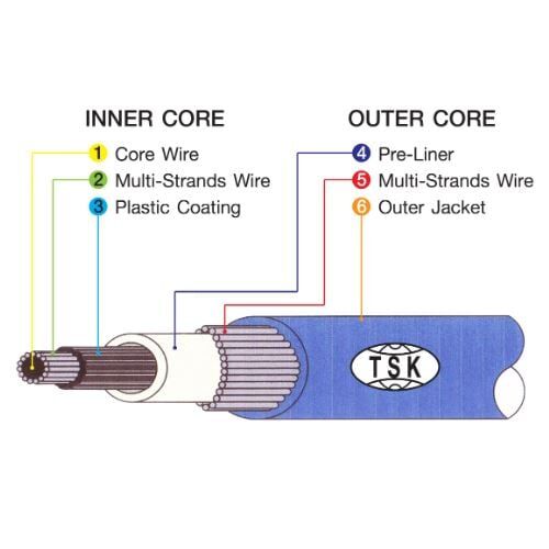 TSK low friction throttle and gear control cables are the most flexible and strongest cable on the market for its size. This is achieved by winding smaller cables over the solid core, this inner is then covered with a unique ribbed nylon coating to guarantee minimum friction and maximum efficiency. The outer polyethylene liner is matched to the ribbed inner to minimise friction and cable backlash. A spiral wire outer structure is impregnated and coated by Oil and UV resistant Polyethylene outer casing ensures that this cable will handle the harshest marine environments.