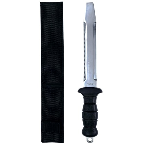 The Land & Sea Abalone divers knife features a blunt tip which is angled slightly up in order to easily obtain Abalone. It comes with rubber straps and a durable webbed sheath. The knife is made from 420 grade stainless steel.