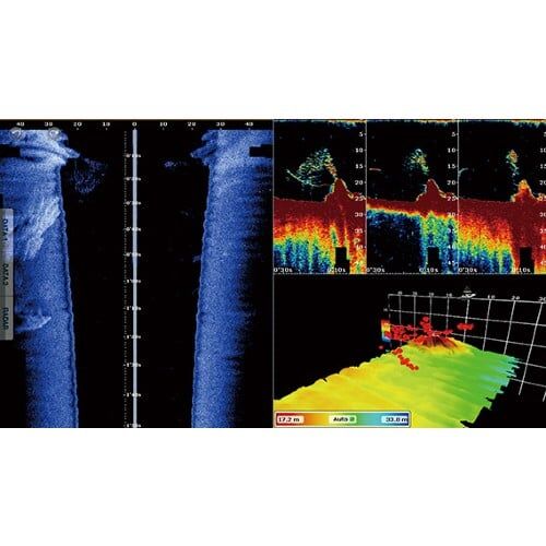 A single (directly under boat) or triple direction (middle, left and right) fish finder image is displayed simultaneously. The Triple beam display helps to understand the depth of fish targets and the seabed condition in each direction, as well as the direction the target fish are moving. Each beam angle and beam width are selectable.
