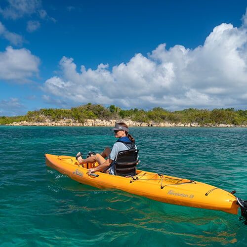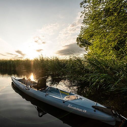 The Hobie Revolution 13 features a lightweight, rotomolded polyethylene hull form. The Revo 13 maintains pace with minimal effort, for trips of all varieties.