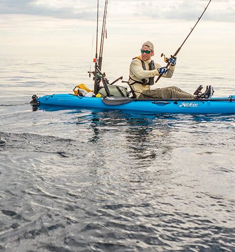 The optional sail kit provides an alternative to paddling or pedaling the MirageDrive, and the Revo 13s rod holders and padded seat provide all-day comfort.