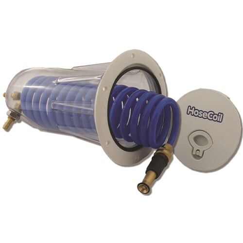 Made from highly durable UV stabilised materials. The HoseCoil hatch enclosure mounts flush into the deck or bulkhead. The twist lock lid has a waterproof O ring seal and completely removes from the enclosure for easy access to the hose.