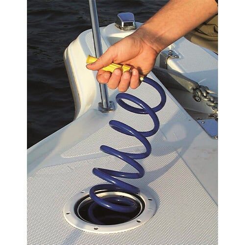 The 4.5m self coiling hose is constructed from strong and highly flexible blue polyether material.