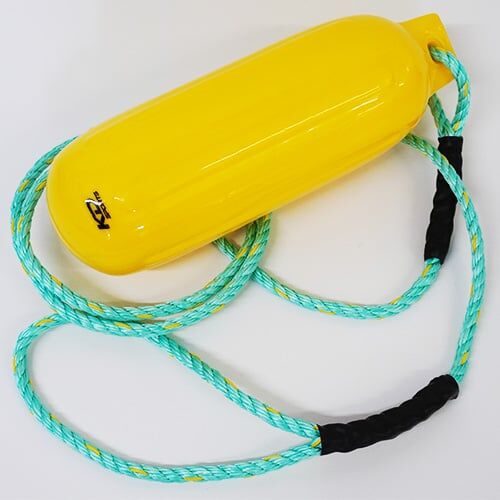 Inflatable Yellow Float spliced to approximately 2 metres of rope with large loop spliced in the other end to allow you to loop your lead buoy to your main float.