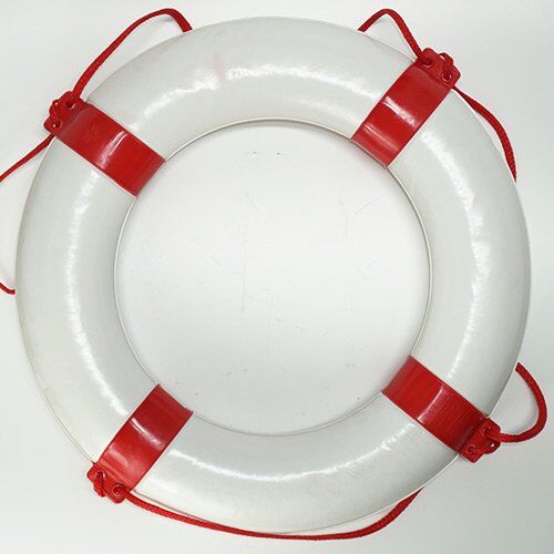 Closed cell foam lifebuoys with white PVC cover. Available with red or blue bands & poly rope. 650mm (26) diameter lifebuoy for pleasure craft, pool or ecorative purposes. NOT approved for commercial or offshore use.