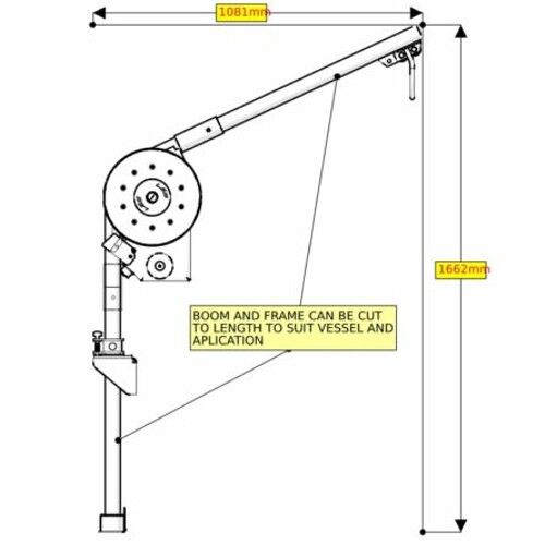 Through gunnel or inside gunnel mounting options with Lift & Locking pins for easy positioning or swinging pots into your boat with no need to tie off when using the 300mm large sheave. A simple one bolt changeover to fit Mono Spool or Braid spool (Not Included). The frame post & boom can be cut to suit your vessel & purpose with mounting fittings, frame, boom, open Foble sheave, pot hook, and lead are included to suit a standard installation.