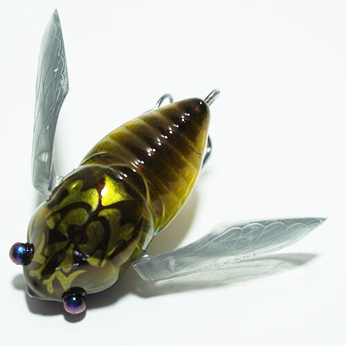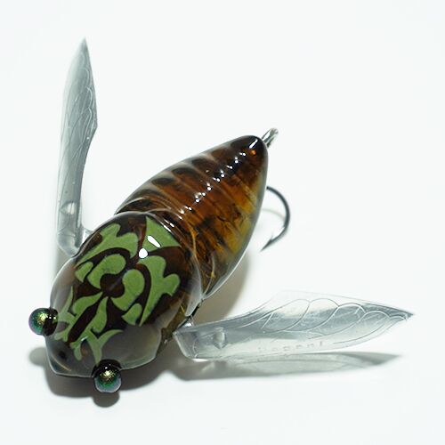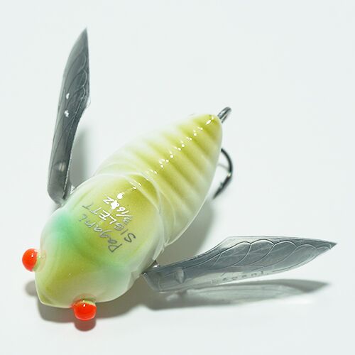 Megabass Siglett is a winged bug bait, modeled after a cicada. Since the line eye is located at its tail, it casts with the least air resistance ensuring surprisingly good casting distance and accuracy as a winged bug bait. When retrieved, Pagani Sigletts wings naturally open up and each wing lip starts to crawl alternately as it jitters along.