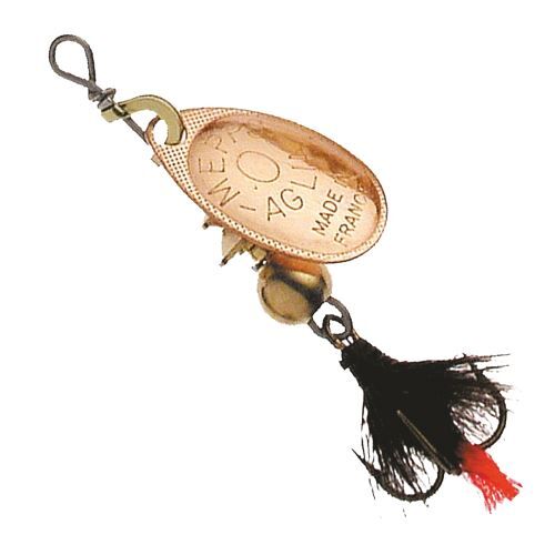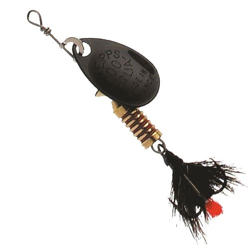 The Aglia Mouche Noire has become a favourite for summer fish, low water levels and other difficult bite situations. The vibrations of the blade are complemented by the visual effects and stimulus of the subtle movements of the hackles and the visual impact of the tail fibres.
