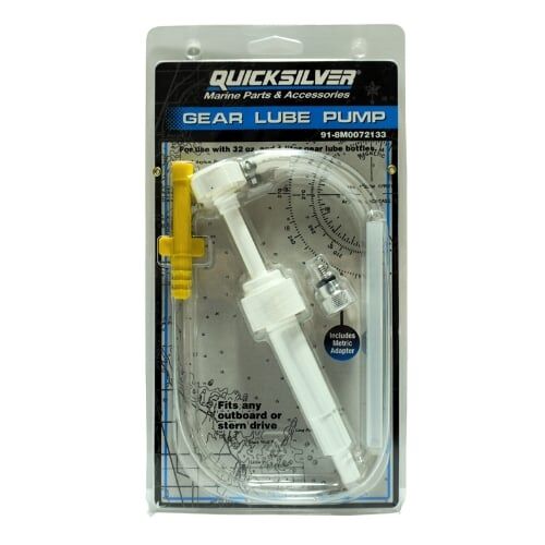 Easily replace your lower unit oil with this pumpand all litre bottles. Fits any outboard or stern drive with a 3/8″ -16 drain plug. Adaptor included for gear cases with an M8x1.25 drain plug.