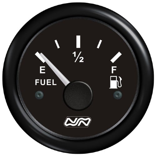 Nuova Rade electrical fuel gauge with 48mm dial size and fits standard hole cutout of 52mm with panel thickness upto 20mm. Comes with wiring harness and suit 12-24v systems.