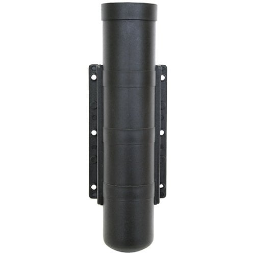 Plastic. Designed to screw onto a flat surface. Available in Black or White (not shown).