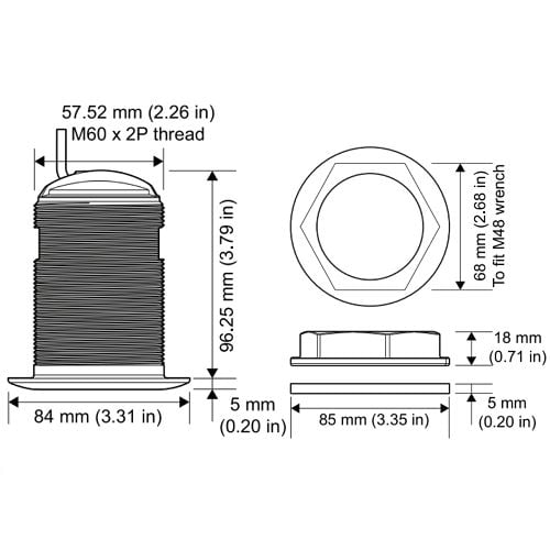 Bronze housings supports single High CHIRP sonar with a 25° conical beam with up to 900 ft (274 m) depth range and integrated seawater temperature sensor.
