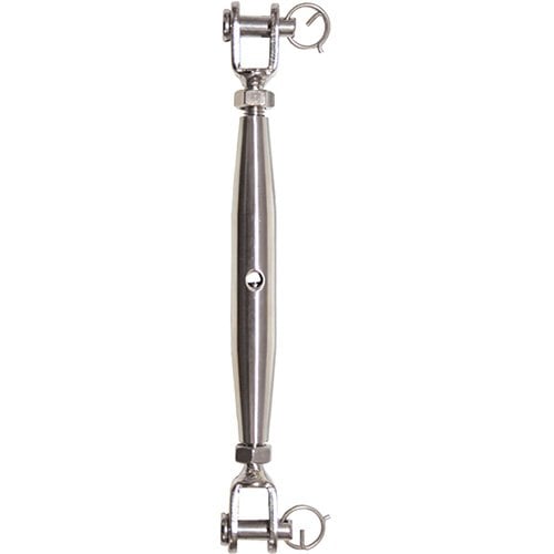 Stainless Steel enclosed rigging screws. Jaw in each end (Fork, clevis pin and split ring) . Size refers to approximate thread size.