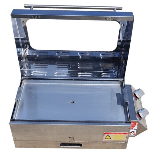 The Sizzler barbecue range is made from an extremely high quality commercial stainless steel and comes in a choice of low lid or high lid options. These barbecues have been purpose built for Caravans, RVs, Camper Trailers and the great outdoors. They have the same robust construction as the Galleymate marine barbecues, but are built out of lighter grade stainless steel to save weight. The Sizzler Deluxe High Lid can be used as a barbecue, a stove-top or an oven.