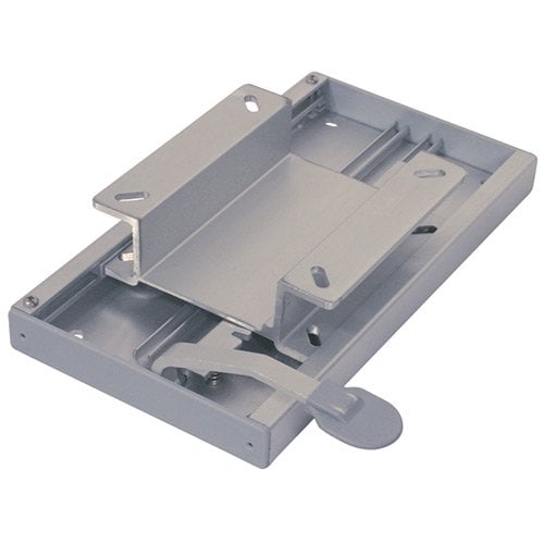 Aluminum and plastic construction seat slide, provides approx 110mm of travel in 10mm increments. Fits under seat on top of pedestal, seat box or deck. 70mm High.