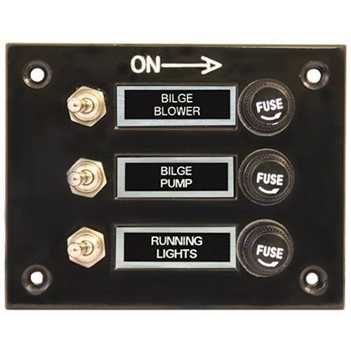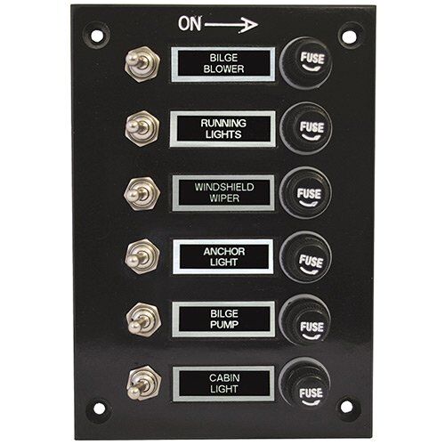 Black bakelite panels fully wired for use, with chrome plated brass toggle switches. Include screw-in fuse holders with 5 amp fuses.