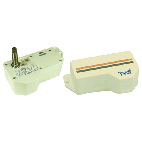Heavy duty wiper motor, self parking two speed wiper with 110º sweep angle. Motor is shrouded by a white plastic cover.